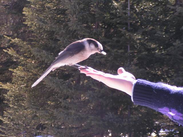 À l'affiche aujourd'hui, les petits oiseaux viennent manger dans les mains de la madame.